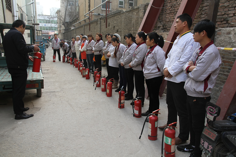 消防部組織超市員工進(jìn)行消防培訓(xùn)和實際演習(xí)